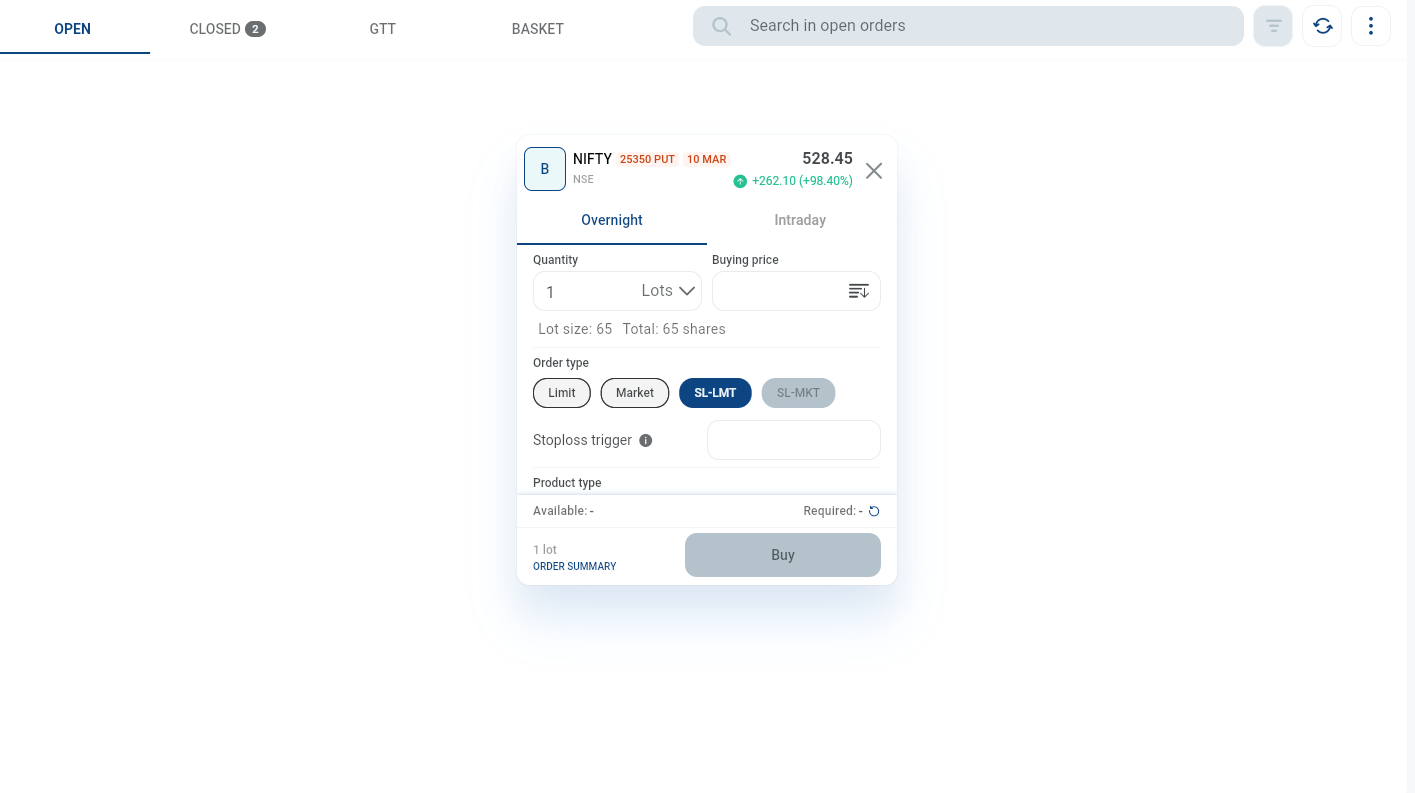 The problem? In a fast Nifty breakout, the premium will hit ₹100, jump to ₹102, and never look back. Your Limit Order will just sit in your broker’s system as “Pending,” and you will be left standing on the platform watching the train leave without you.